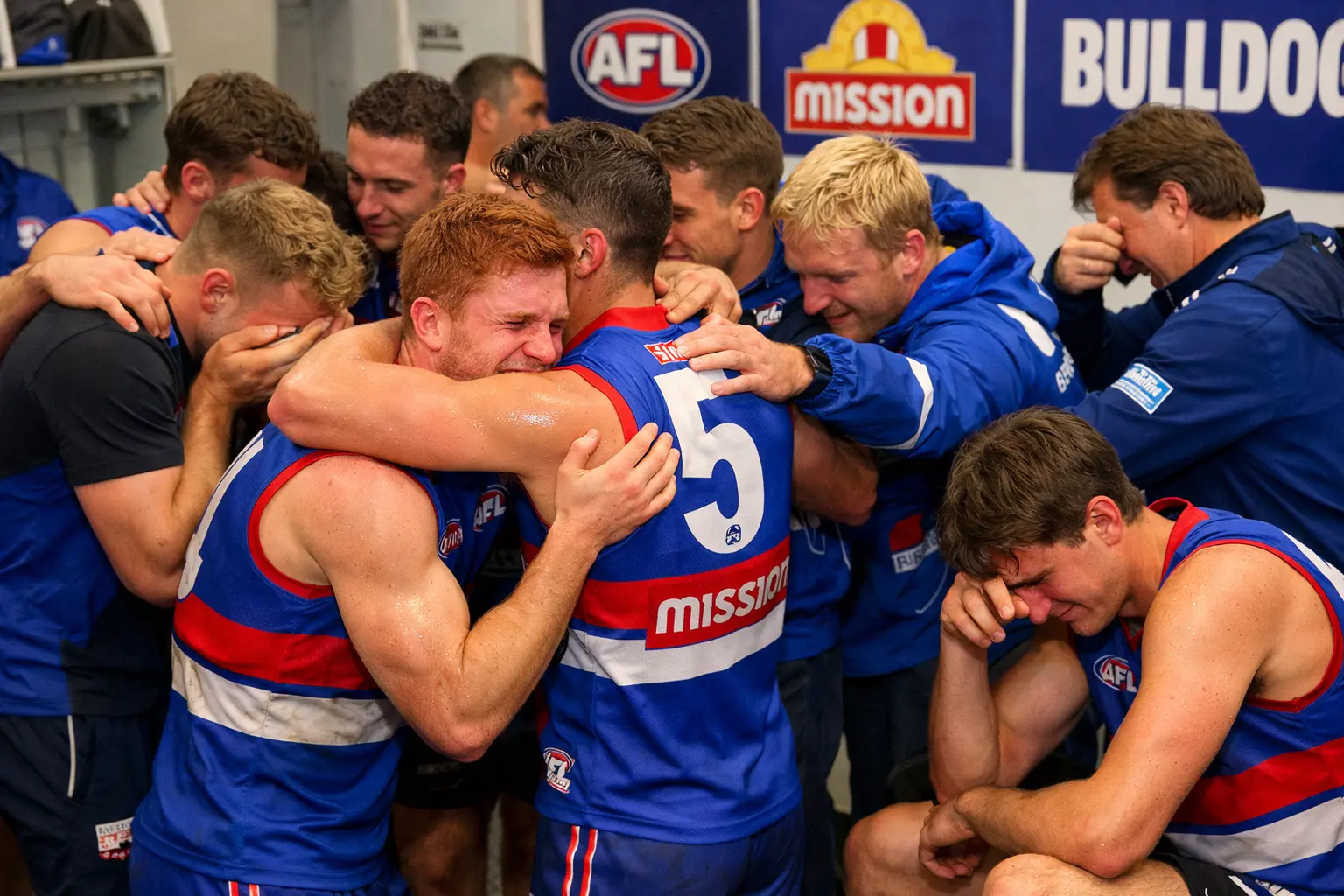 Even head coach Luke Beveridge, widely respected for his stoic demeanour, couldn’t contain his emotions. Turning away from the group, he wiped his eyes quietly. It was a rare glimpse into the emotional core of a man known for resilience and composure.