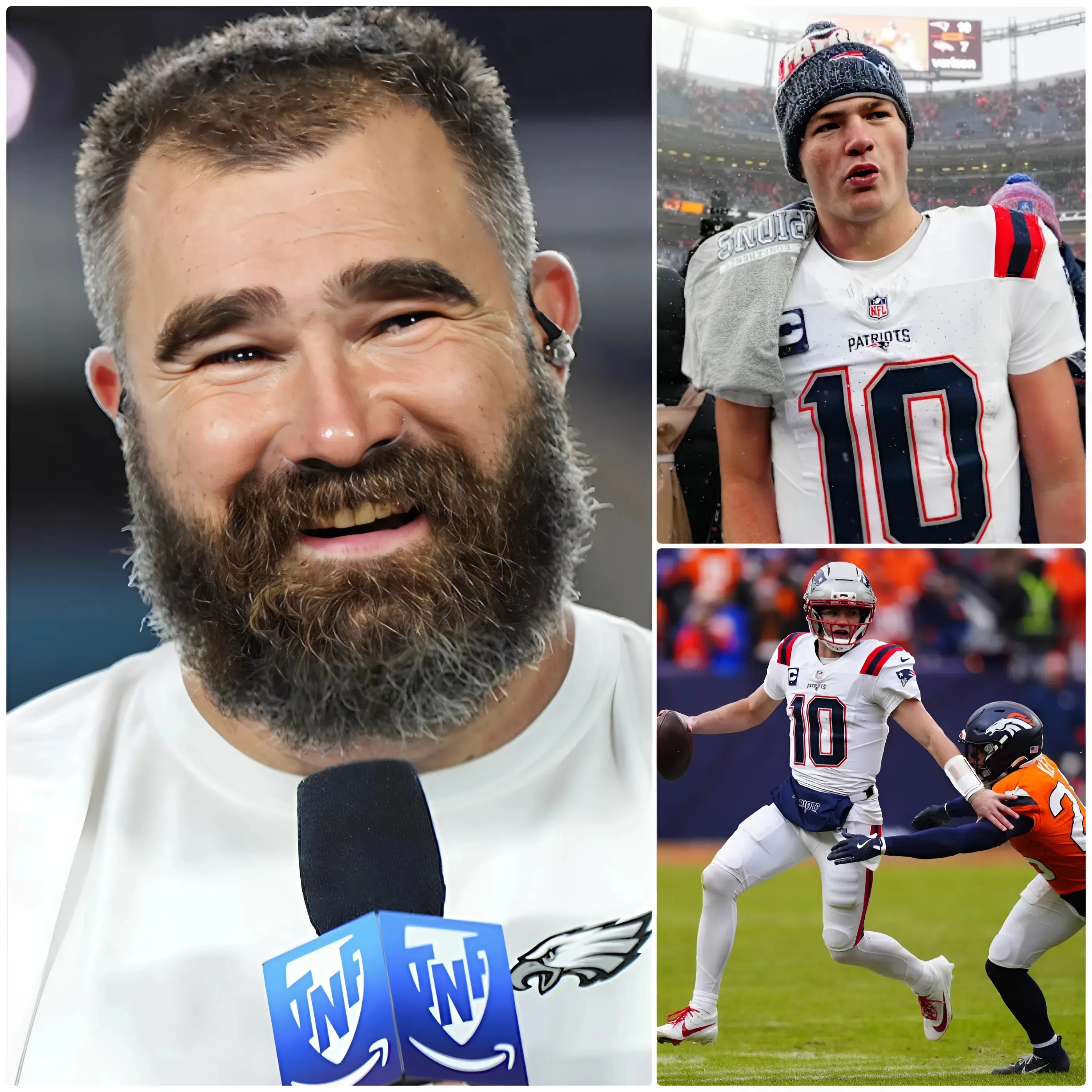 Just minutes after the New England Patriots secured a dramatic 10–7 victory over the Denver Broncos in the AFC Finals, an unexpected voice cut through the noise of hot takes and online criticism. NFL legend Jason Kelce, known as much for his honesty as his Hall of Fame résumé, broke his silence with a powerful public statement defending Patriots quarterback Drake Maye — and in doing so, ignited a wave of emotion across the football world.