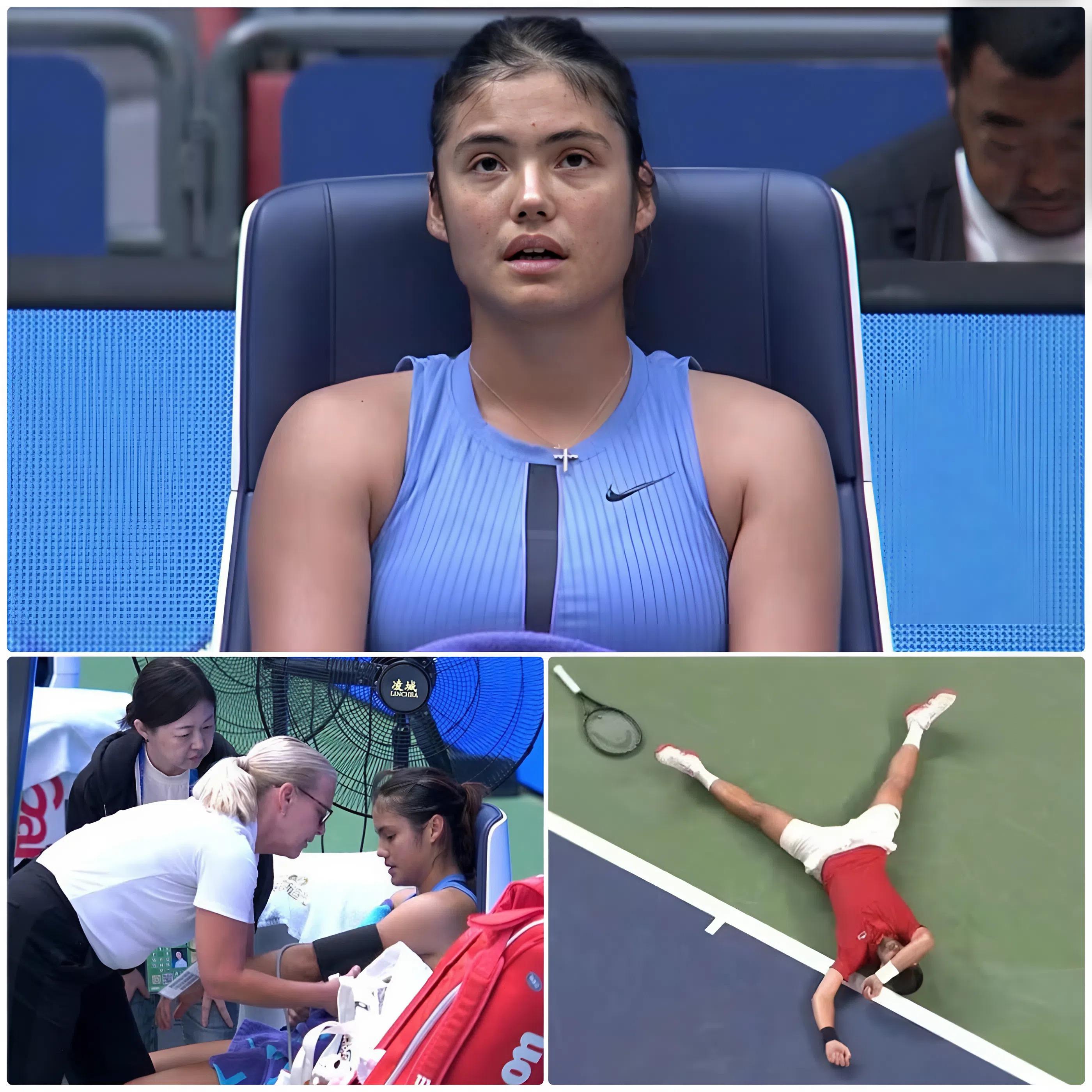 🔥HEAT HELL AT WUHAN OPEN! Emma Raducanu collapsed in her chair, out of breath, forced to withdraw mid-match when the doctor rushed to take her blood pressure in the sweltering heat that caused Novak Djokovic to vomit on the court! The entire tournament turned into an unprecedented health disaster, leaving the tennis world stunned and fearing for the players that a day of horror competition would go down in Chinese sports history!