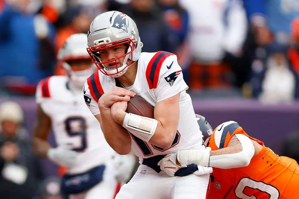 Snow still clung to jerseys and cleats when Drake Maye walked into the press conference room, his right shoulder visibly stiff, his steps slower than usual after enduring relentless hits and freezing winds.
