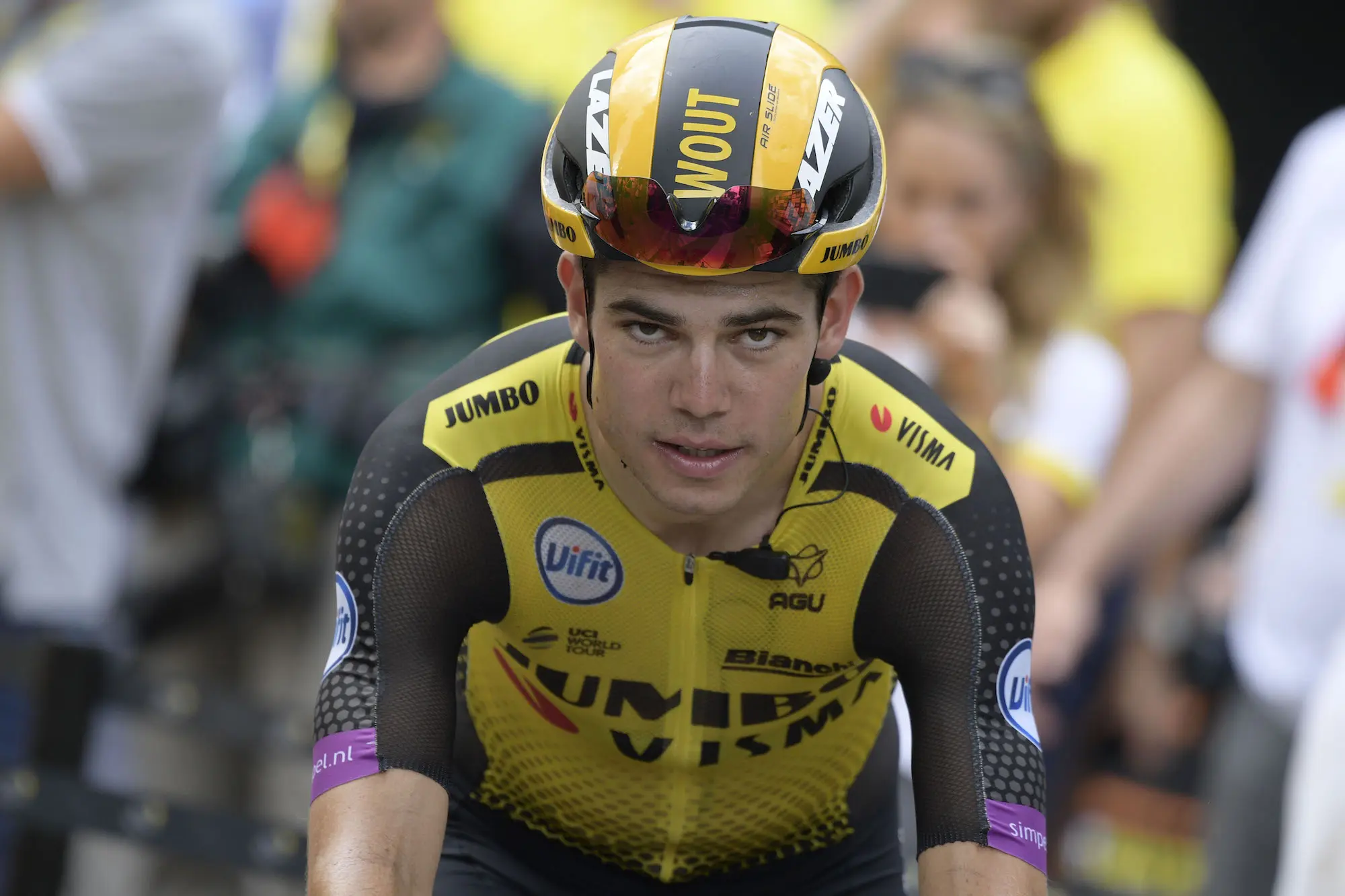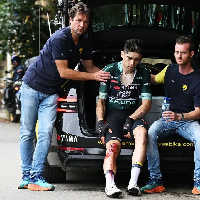De ambulance arriveerde binnen enkele minuten, hun sirenes doorbraken de suburbane rust. Wout, de 30-jarige fenomeen die wereldtitels veroverde in zowel weg- als veldrijden, meerdere Tour de France-etappes won en olympisch goud pakte, werd met spoed naar een traumacentrum gebracht voor een spoedoperatie. Eerste berichten wijzen op een ernstig hoofdletsel door de val, mogelijk verergerd door een gebroken sleutelbeen – een wrede echo van zijn beruchte crash in de Tour de France van 2019 in Pau, waarbij hij bijna zijn carrière verloor door een doorboorde long en gebroken ribben. Artsen omschrijven zijn toestand als “kritiek maar stabiel”, met Wout nu op intensieve zorgen, omringd door familie en het ondersteuningsteam van Visma-Lease a Bike. “De komende 48 uur zijn cruciaal”, verklaarde een ziekenhuiswoordvoerder ernstig. “Hij is een vechter, maar de zwelling in zijn hersenen baart zorgen.”