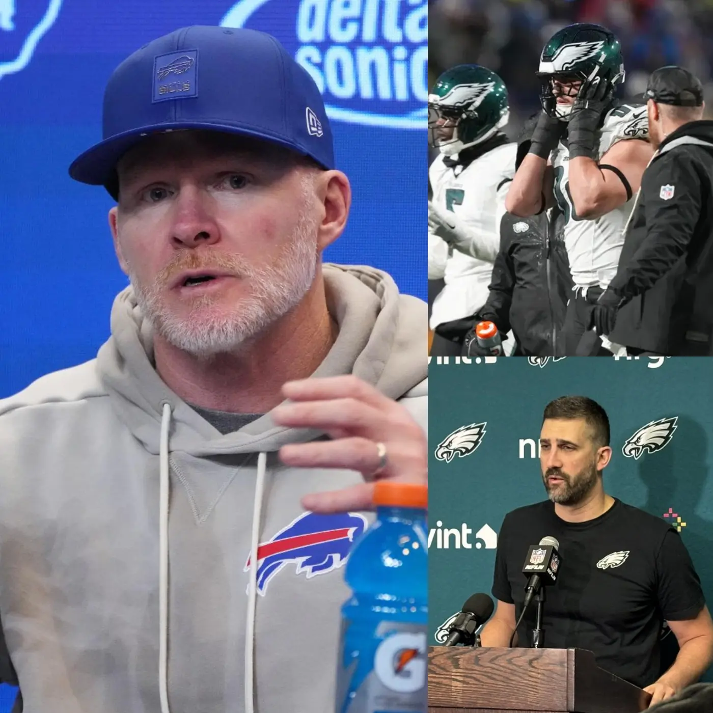 Just seconds after the humiliating 12-13 loss to the Buffalo Bills at Highmark Stadium, Buffalo Bills head coach Sean McDermott, his face flushed with anger, pointed directly at quarterback Josh Allen after he missed a field goal for Khalil Shakir in an attempt for a two-point shot with only five seconds left in the fourth quarter and demanded that the Roger Goodell and the NFL immediately conduct an urgent investigation into Allen’s unsportsmanlike conduct, verbal abuse, and persistent taunts. Five minutes later, in front of dozens of television cameras, Head Coach Nick Sirianni coldly uttered exactly 15 razor-sharp words. The entire stadium descended into chaos, while Sean McDermott stood frozen, his face pale, before millions of college football fans across the United States.