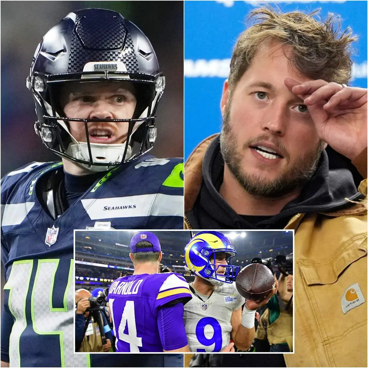 Only minutes before kickoff in the highly anticipated LA Rams vs Seattle Seahawks semifinal, the atmosphere was already electric. Fans filled the stadium with cheers, chants, and the unmistakable energy that only a high-stakes playoff game can bring. Yet amid the pregame buildup, attention shifted off the field to an unexpected moment that would dominate headlines for days. The spotlight fell on two quarterbacks: Matthew Stafford of the LA Rams and Sam Darnold of the Seattle Seahawks.