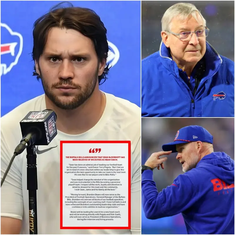 The Buffalo Bills organization was thrown into chaos just hours after news broke that head coach Sean McDermott had been fired. What initially felt like another ruthless NFL decision quickly escalated into a franchise-defining crisis that stunned players, executives, and fans alike.
