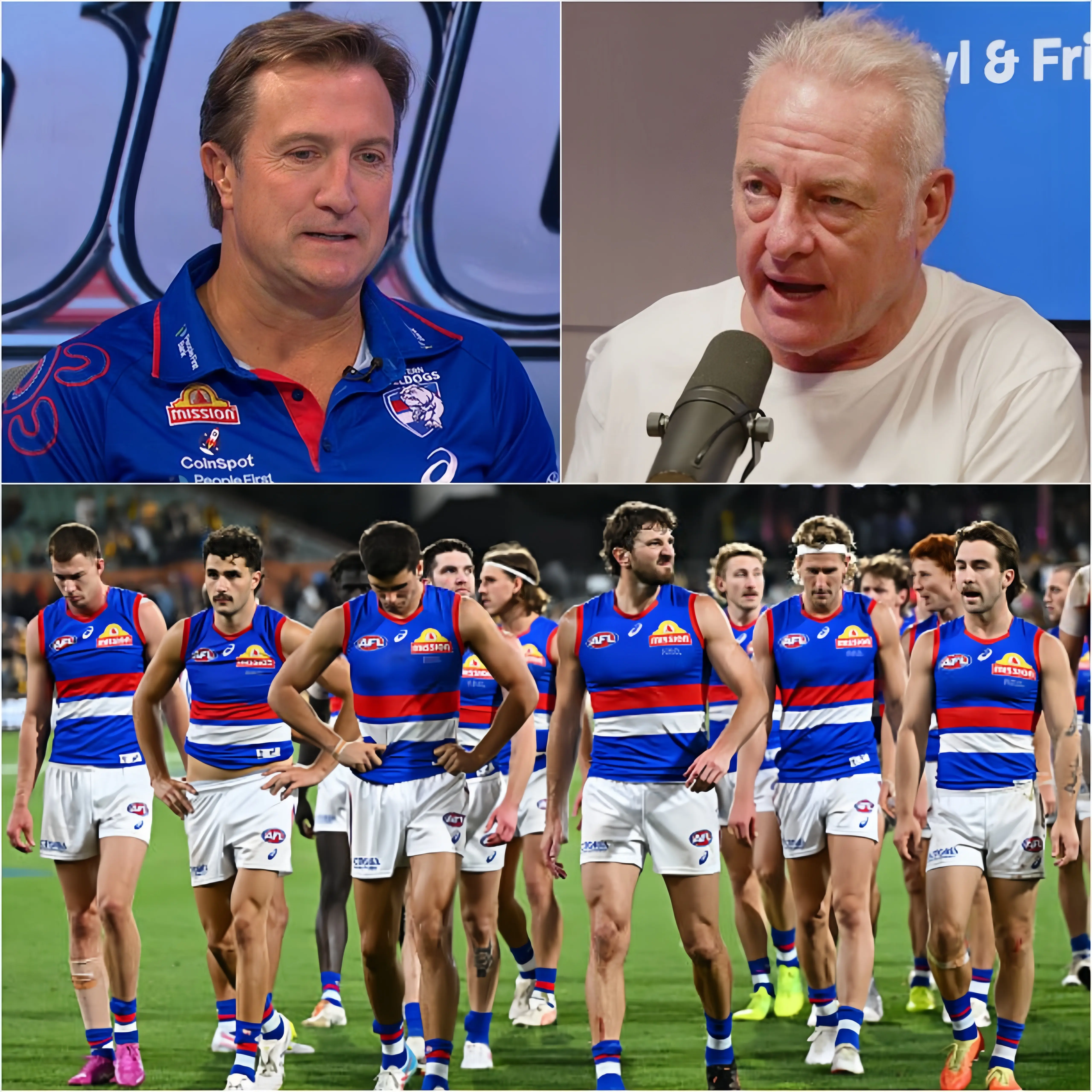 Beveridge, known for his usually calm and measured demeanor, was momentarily taken aback by the comment. He had been facing growing criticism from both fans and media, and this latest barb seemed to be the straw that broke the camel’s back. Russell’s remark wasn’t just a criticism of the Bulldogs’ recent form; it felt like a personal attack on Beveridge’s leadership and his future with the club. As the studio’s atmosphere shifted, with some visibly uncomfortable at the sudden escalation, Beveridge’s eyes locked onto Russell, and for a brief moment, it seemed as though he might react impulsively.