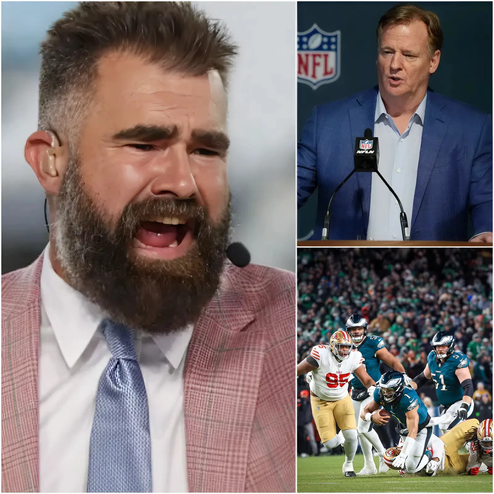 🚨🚨 THE ENTIRE NFL IS SHAKEN! The silence has finally been torn apart as Jason Kelce suddenly stepped to the front lines, igniting an unprecedented storm of controversy. After the investigation files were laid bare, Kelce openly demanded that the entire 2025 Super Bowl playoff results involving the San Francisco 49ers be overturned. Amid the chaos, the NFL was forced to convene an emergency late-night meeting — and what emerged behind closed doors left the sports world stunned.