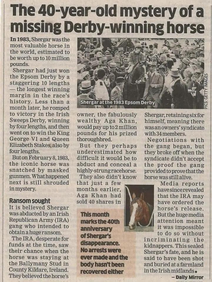 THE WORLD’S BIGGEST MYSTERY OF THE DISAPPEARANCE OF LEGENDARY SHERGAR