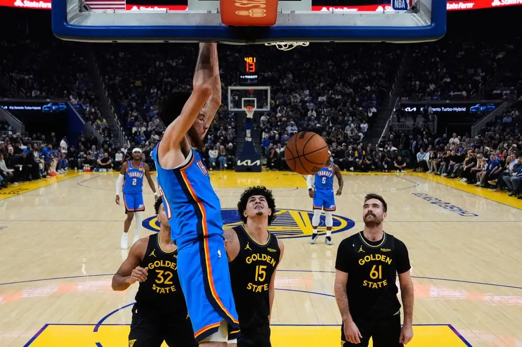 Shai Gilgeous-Alexander led the Thunder’s assault, pouring in 30 points in under 30 minutes, while Chet Holmgren contributed a double-double with points, rebounds, and blocks that completely disrupted Golden State’s interior defense.