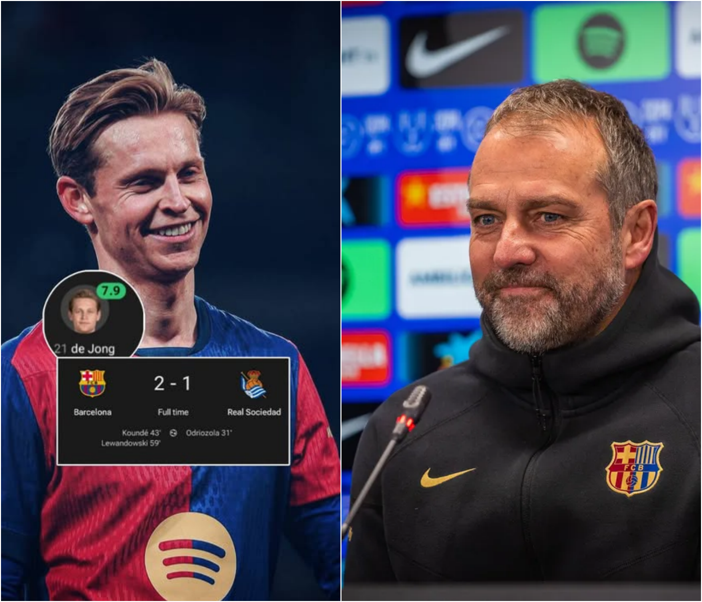 Frenkie de Jong blijft indruk maken bij Barcelona en bevestigt opnieuw zijn cruciale rol binnen het team. Na zijn uitstekende optreden in de wedstrijd tegen Real Sociedad gisteravond, heeft de trainer van Barcelona hem de hoogste lof toegekend. De Jong liet zien waarom hij een van de meest complete middenvelders van zijn generatie is, met zijn vermogen om het spel te controleren, nauwkeurige passes te geven en het tempo van de wedstrijd te bepalen. Het optreden van De Jong trok de aandacht van zowel de fans als de media en bevestigde dat hij een onmisbare speler is voor Barcelona.