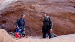 في يوم من الأيام، بينما كانا يتسلقان في مضيق “الأنفاق” المشهور، بدأت السماء بالتحول. كانت الأمطار تتساقط بغزارة، ولكن لحسن الحظ، كانا قد أخذوا احتياطاتهم. ومع ذلك، لم يكن أحد يستطيع أن يتوقع أن في ذلك اليوم سيواجهان ظاهرة طبيعية غير قابلة للتحكم. فقد جاء الفيضانات المفاجئة، وهي ظاهرة تحدث بشكل مفاجئ في هذه المنطقة، ليتمكن من تحريك الصخور الضخمة عبر وادي صهيون، ما أدى إلى انقطاع الطريق أمامهم. كانوا قد تسلقوا بالفعل عدة أميال، لكن كل شيء تغير في لحظة واحدة. بين الصخور المنهارة، ومياه الفيضانات المتدفقة، لم يكن لديهم سوى القليل من الخيارات.